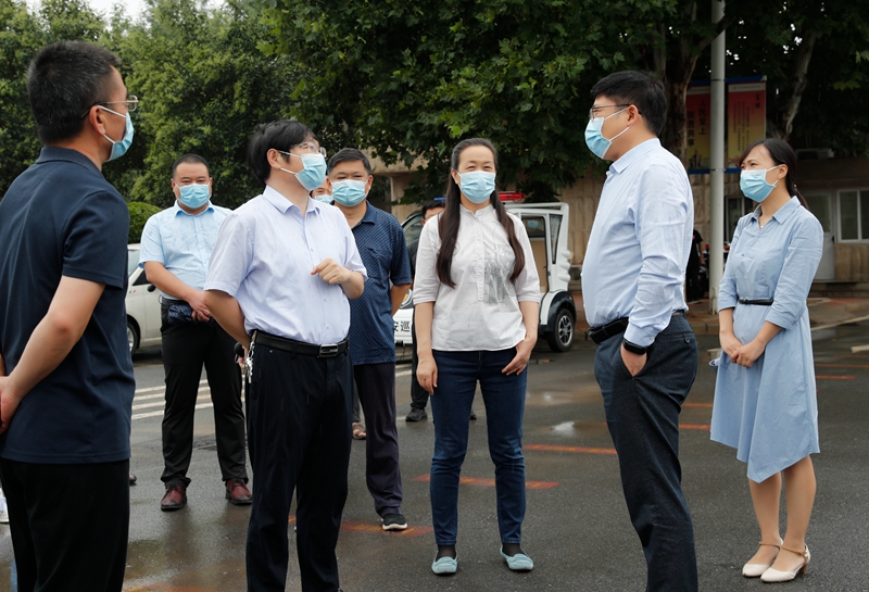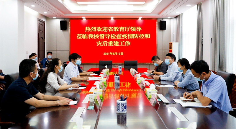 8月13日上午,省教育厅二级巡视员徐恒振、高教处副处长张小茜一行4人来到太阳成集团tyc9728,就疫情防控和灾后恢复重建工作进行检查指导。党委书记王雪云,校长李学志,副校长张风格、王孝俊陪同检查,学校疫情防控、防汛救灾工作指挥部各专班负责人参加了相关检查工作。