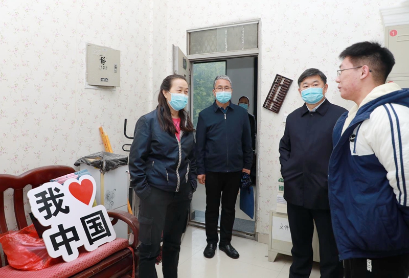 10月5日至7日,党委书记王雪云、校长李学志、副校长王孝俊在党委办公室、校长办公室、教务处、学生处、保卫处、后勤管理服务中心等部门负责人的陪同下,先后到两校区餐厅、宿舍、教室、值守值班岗位走访慰问师生,并对校园安全和疫情防控进行督导检查。