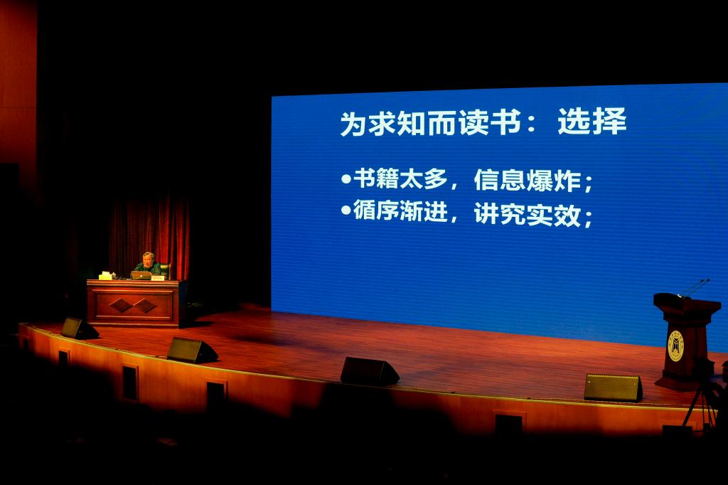 葛教授结合自身丰富的阅历,以深厚的学养、精深的思考、生动有趣的语言向大家分享了他的读书人生。他指出:要用恰当的读书方法从而达到有效的读书效果。为了求知的需要而读书,要学会“选择”;为了解决问题而读书,就要掌握“穷尽”的读书方法,在研究内容所在领域尽可能多地去阅读,争取在前人的基础上有所创造;作为人生的乐趣而读书,要在不违背公序良俗的前提下“随心所欲”,注重知与行的统一。在谈到读书对人生的作用时,葛教授用自己的阅读生活和人生经历,告诉师生:知识确实能改变命运,要学会在阅读中不断积累,才能抓住机遇取得成功。